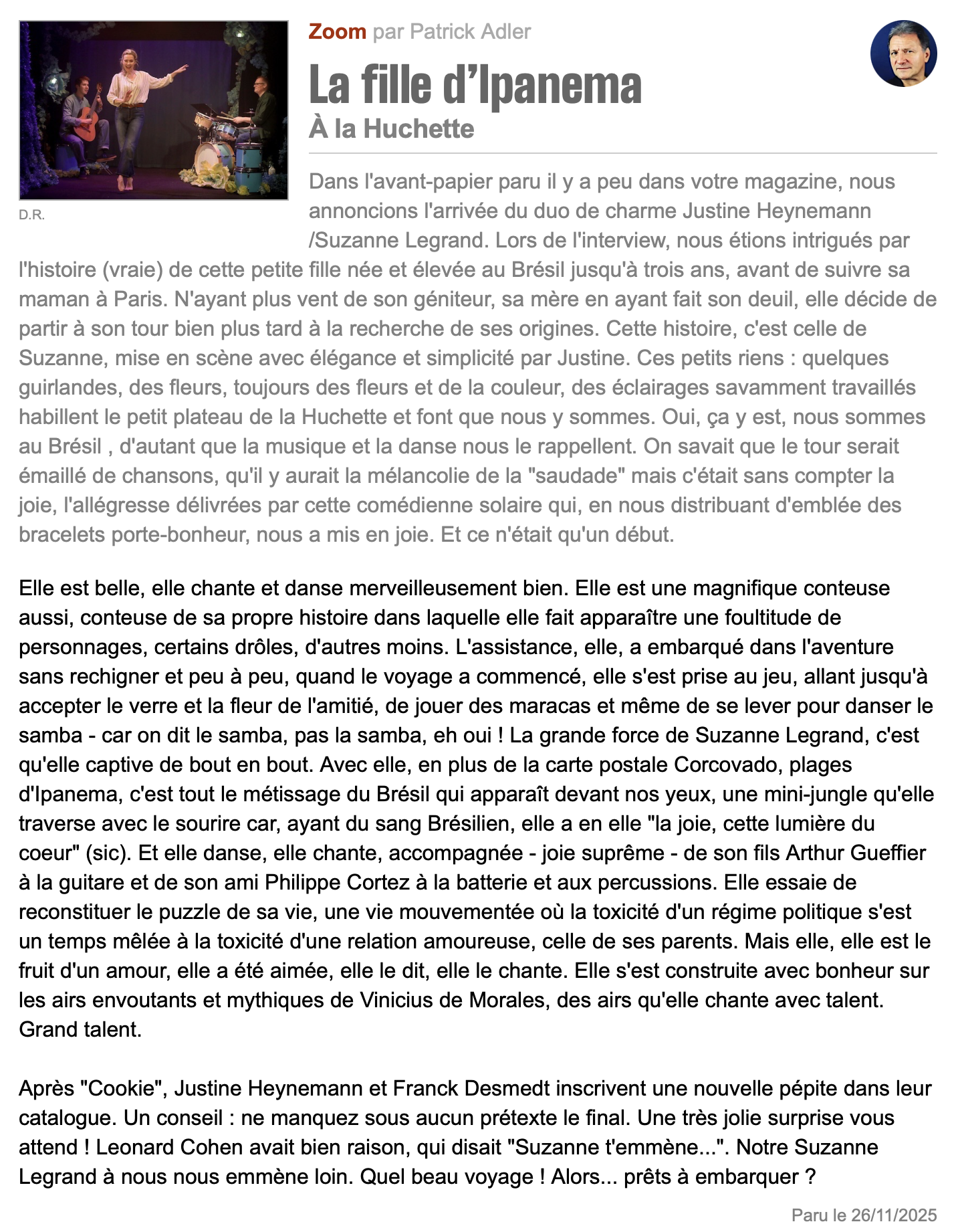 - Avec : Suzanne LEGRAND, Arthur GUEYFFIER, Philippe CORTEZ