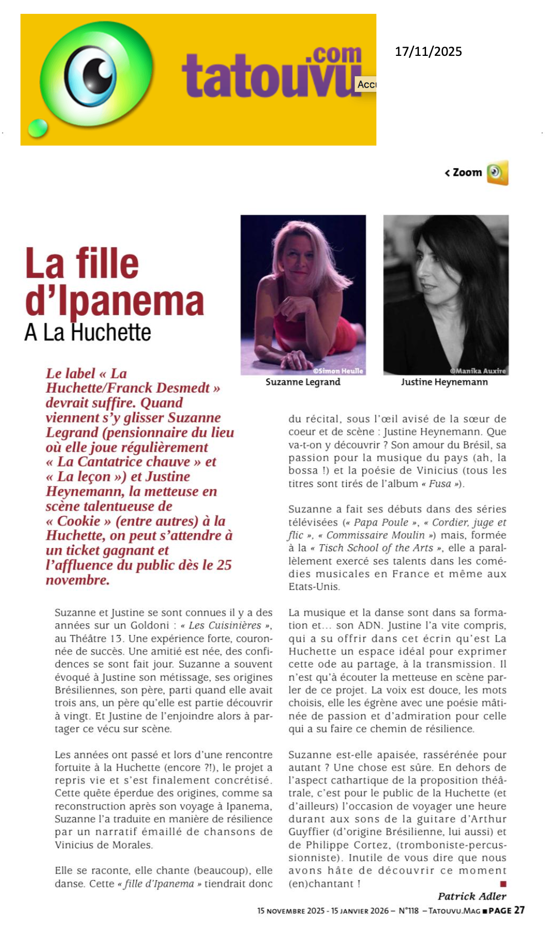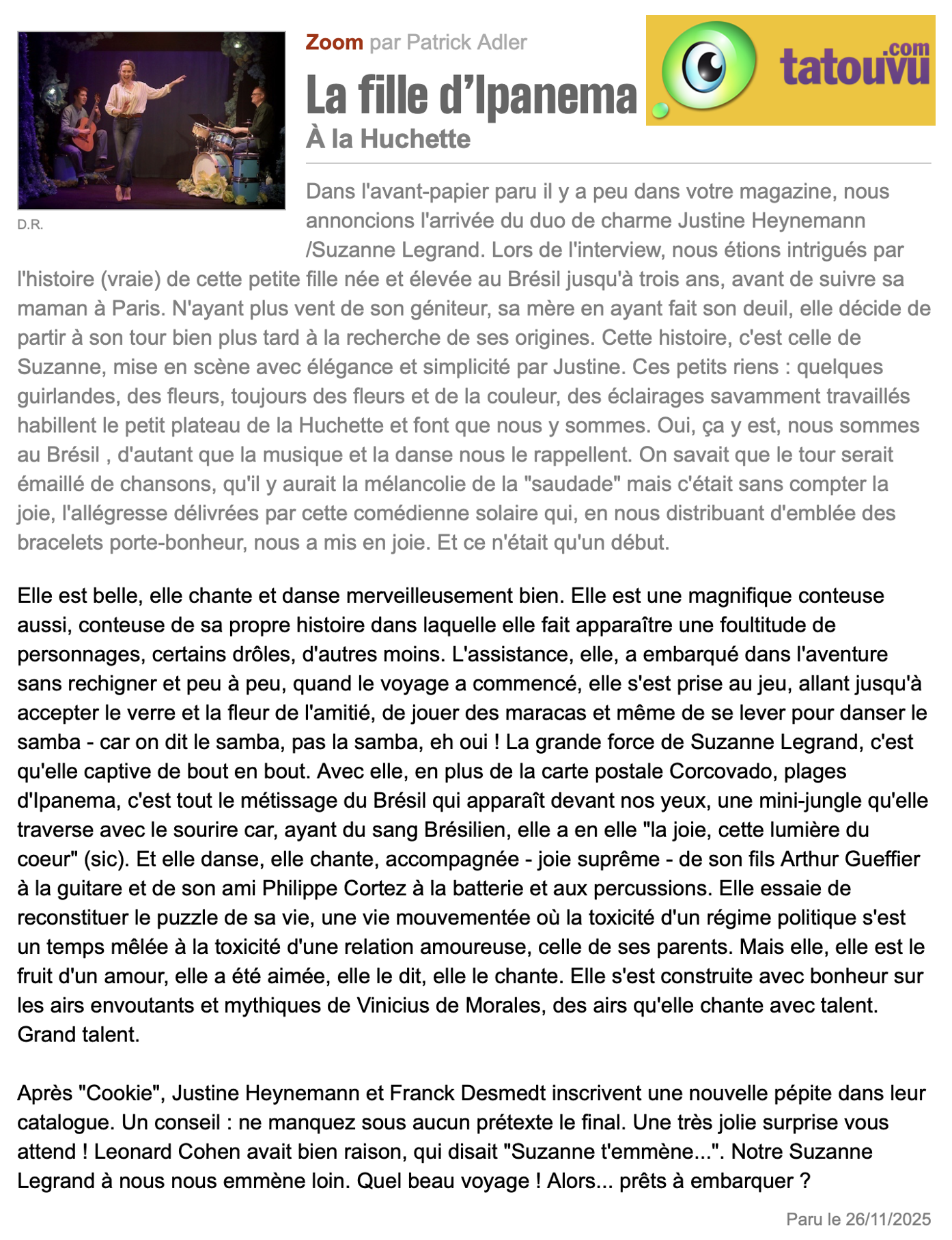 - Avec : Suzanne LEGRAND, Arthur GUEYFFIER, Philippe CORTEZ